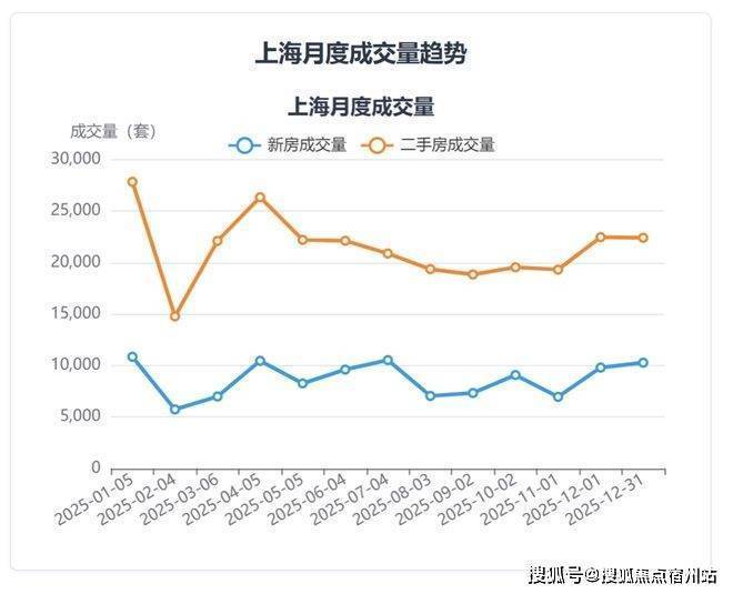 上海市场在年末呈现新房与二手房走势的短期背离。2025年12月,新房成交套数环比增长4.8%,而二手房成交套数微降0.3%,新房市场在年末表现相对活跃。