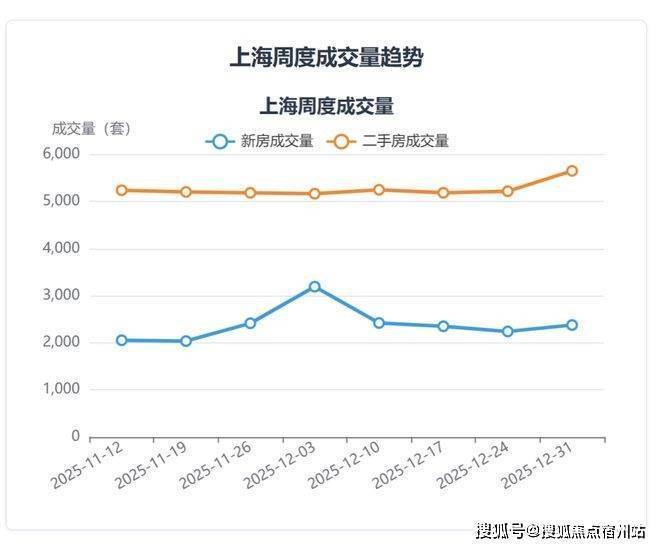 从周度数据看,最近一周(截至2025年12月31日)总成交套数为8032套,环比前一周增长6.8%,其中新房成交套数环比增长6.1%,二手房成交套数环比增长8.3%,短期热度有所回升。