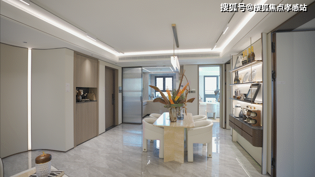 餐厅空间相当阔绰,可放置四人桌或六人桌,尺度之大在400万左右产品中非常难得一见。
