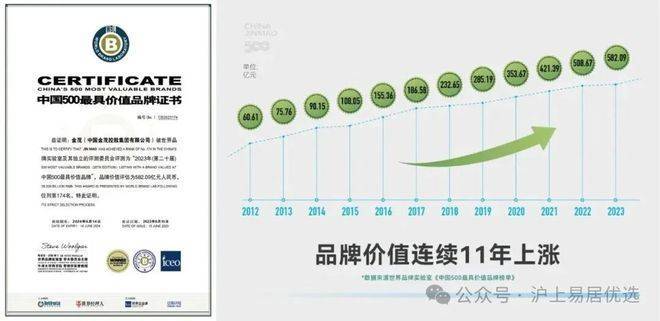 自2005年以来,金茂已经连续19年入围“中国500最具价值品牌”榜,2023年更是以582.09亿元的品牌价值位列第174名。(数据来源于金茂官网)