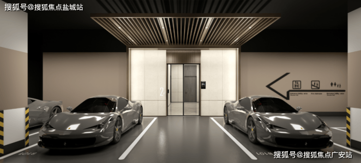 车行入口也设计了保安门岗,业主驾车入库安全有保障!车库地下入户大堂也是设计感十足!
