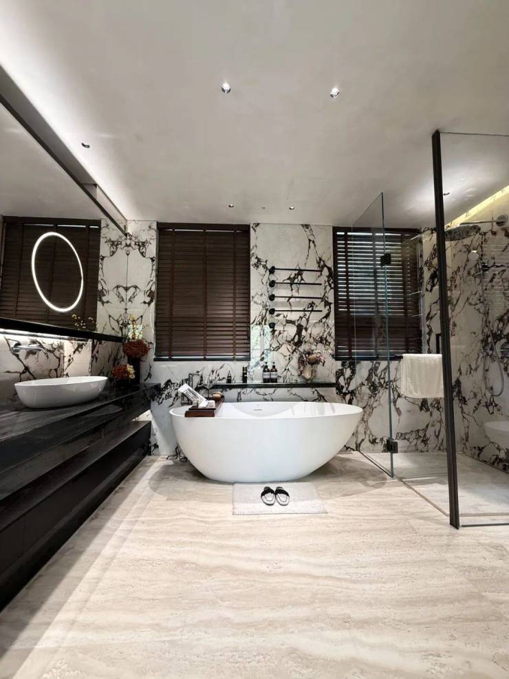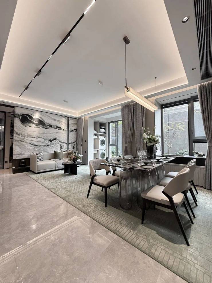 立面腰线等细节处则提炼汝窑“金线”传奇符号,以还原精雅的繁复工艺,为建筑线条进行金线勾边,点睛强烈而隽永的美学仪式感;较高的窗墙比延伸视野边界的同时,呈现极简派超高颜值…诸如此类的精工细节不胜枚举,真正做到了坚持骨子里东方文化标签,用现代材料与传统技法相结合,打造出符合现代审美需求的高质人居产品。