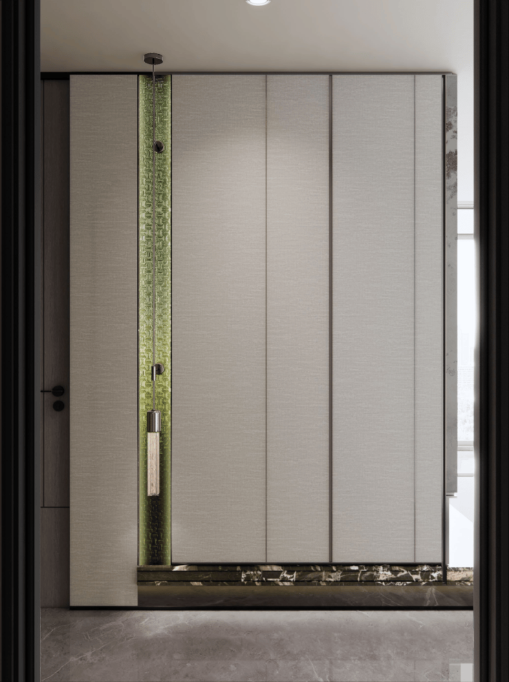 独立电梯厅私享入户,匹配都会峯层家庭的气度与风范,入户玄关设计将门里门外的世界自然切割,具备收纳功能的同时,又兼得归家的从容与私密感。
