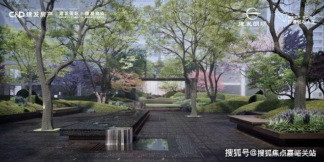 遵循建发中式建筑元素中“儒门”的设计,打造威仪门庭;设计叠水景观及入户青云桥,为业主营造“群贤毕至,平步青云 ”的归家尊崇。