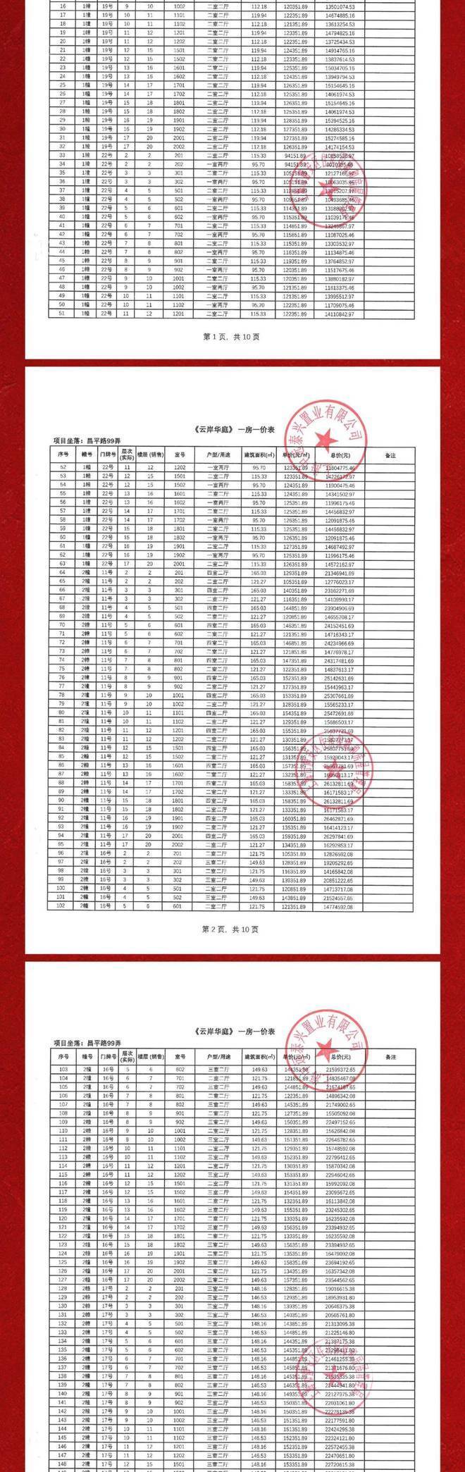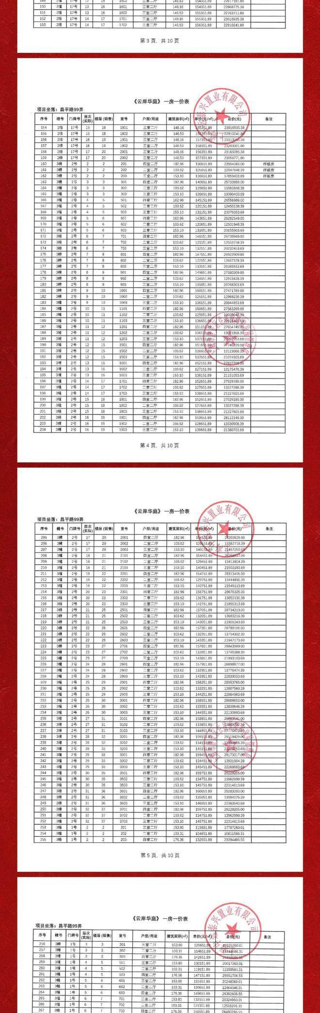 一房一价表如下