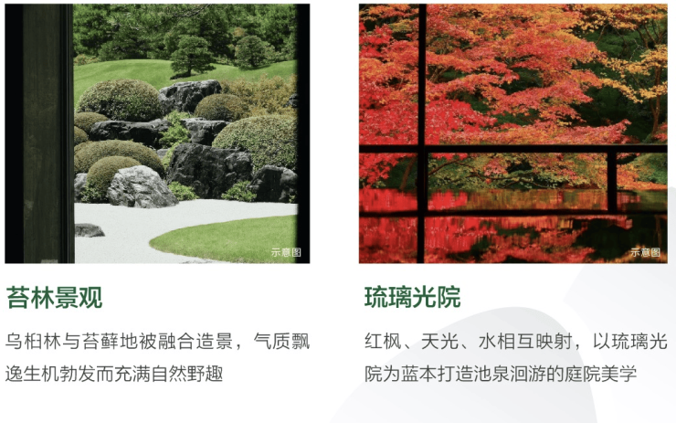 ·园林之美:借鉴安缦酒店意境,打造“一轴五园十巷两谷”的漫游园林,苔林景观、琉璃光院与私密巷弄交织东方美学园境。