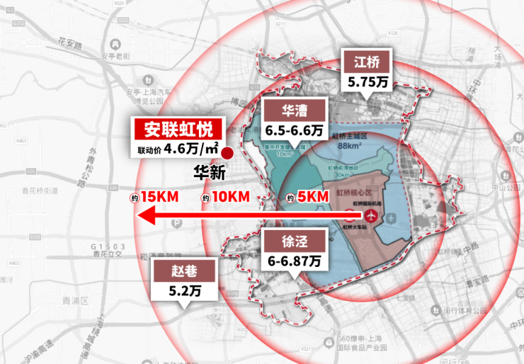 但与此同时,相较于大虹桥其他板块的价格,华新低了近2万元/㎡,如果是100㎡的户型,就要省下近200万元,这对于一个准备在上海上车的家庭来