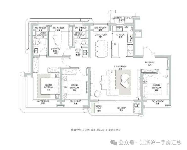 而在建面约134㎡ 3房,配置了主卧套房,更是配置了270°环幕级景观飘窗,正如同全面屏一样,带来IMAX级的宽幕视野!