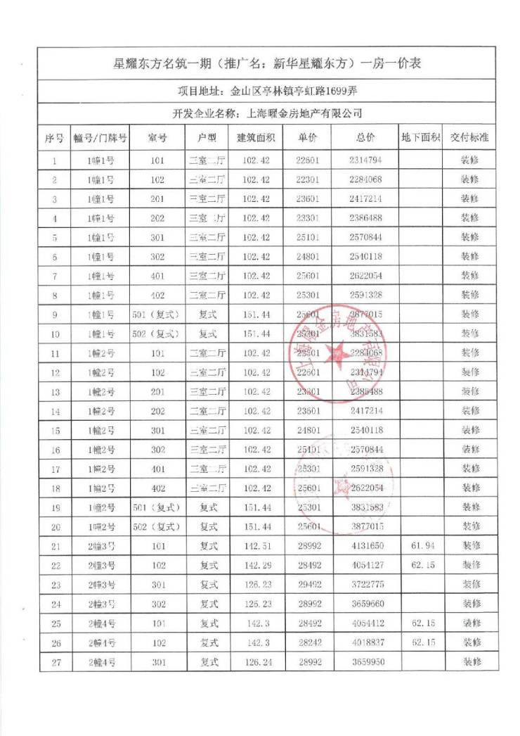 新华星耀东方营销中心电话:400-8855-420【☎营销中心已认证】项目一房一价表