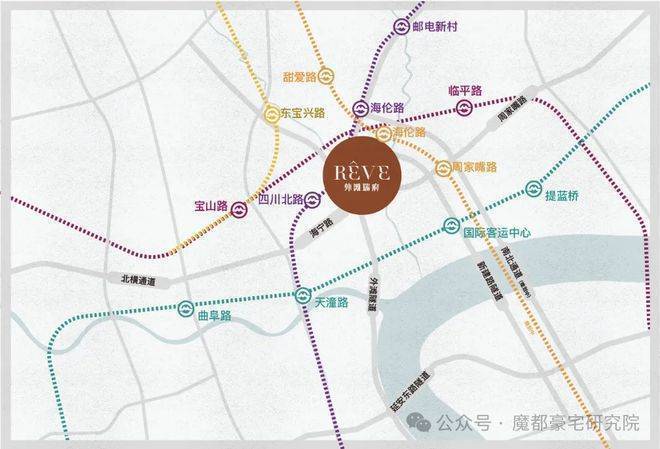 4条轨交:10、3、4号线、19号线(在建中),10号线四川北路站直线距离约300米、4号线/10号线/19号线(在建中)海伦路站直线距离约350米、3号线东宝兴路站房直线距离约900米;