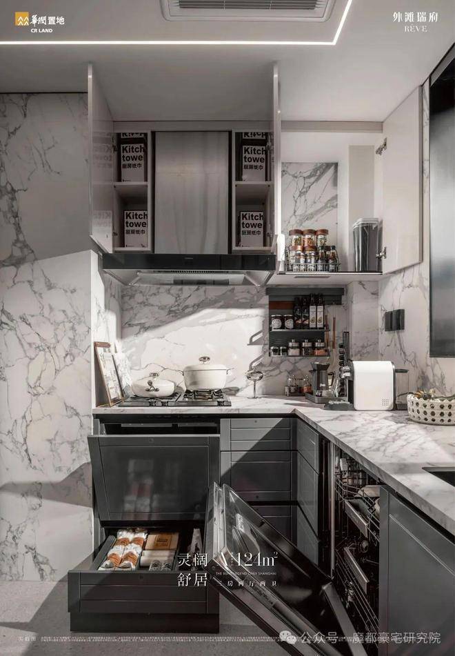 装修上配备国际一线品牌,尤其厨房由嘉格纳领衔,配备灶具、吸油烟机、洗碗机、冰箱蒸烤箱。