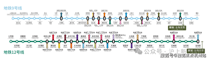 双地铁极速轨交网络:直线距离金海站约600米,9号线(1站金桥、7站世纪大道、9站换乘至陆家嘴);12号线(“换乘之王”,接驳13条地铁纵横全沪)。
