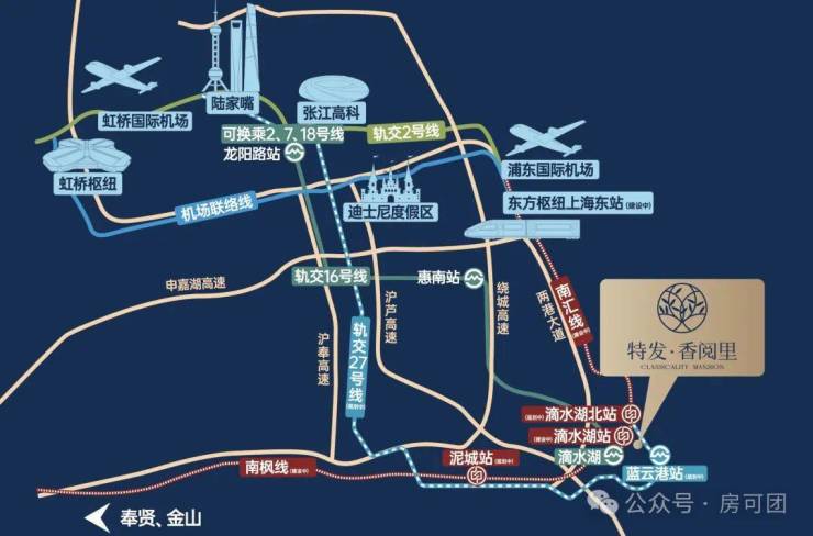 交通聚合:双轨交汇,与南汇线(建设中)、南枫线(建设中)所在的滴水湖北站直线相距约650米,4站直达东方枢纽(建设中),执掌城市动脉;与16号线滴水湖站直线相距约2公里,另有多种出行方式,快速通达全城,27号线(规划中)、临港市区线(规划中)等众多路网编织立体交通网,启幕全球视野。