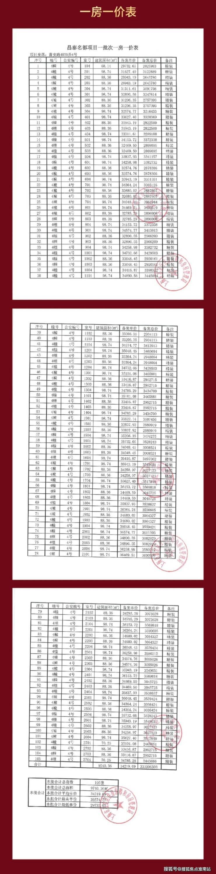 首开105套建面约88-99㎡3房