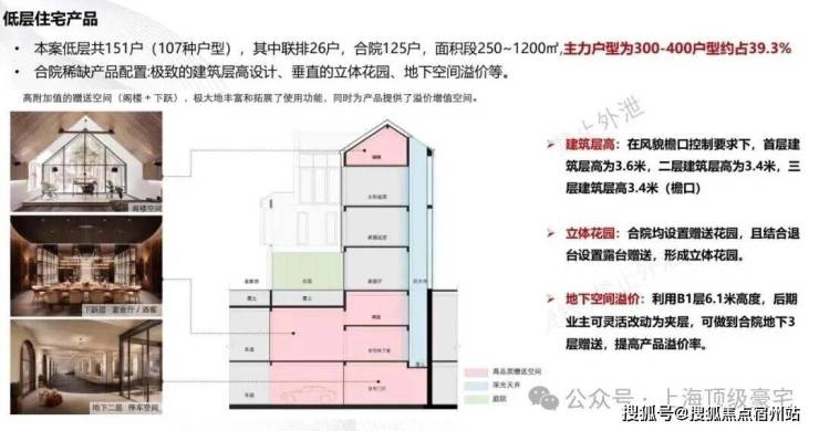 项目主要分两个地块,西区地块主打新建高层住宅,总计六幢,其中包含了4套保留改建的别墅产品。