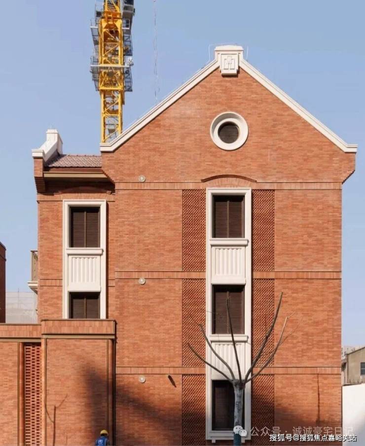 例如,在社区入户,目前已经完美呈现出来的,有强烈视觉冲击的立面大量的红砖、红洞石及大面积的落地弧形玻璃搭配的相得益彰,整个门头既有厚重的历史感,又不失极简主义的现代美。