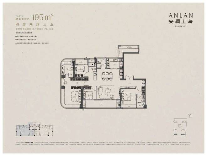 安澜上海创新采用上海首个全地块4米以上整层抬板设计,将传统垂直空间重构为平行生活系统,实现人车分流与立体绿化。项目主力户型为200-400平方米大平层,附带16平方米阳台,遵循新规标准,得房率高。此外,项目还配备约3万平方米主题商业街区、约8000平方米全龄社区配套及5500平方米双会所,满足高端生活需求。