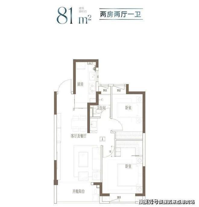 户型特点:小面积,低总价;2房朝南大面宽,舒适生活感受;卧室飘窗设计,释放更多公共空间。