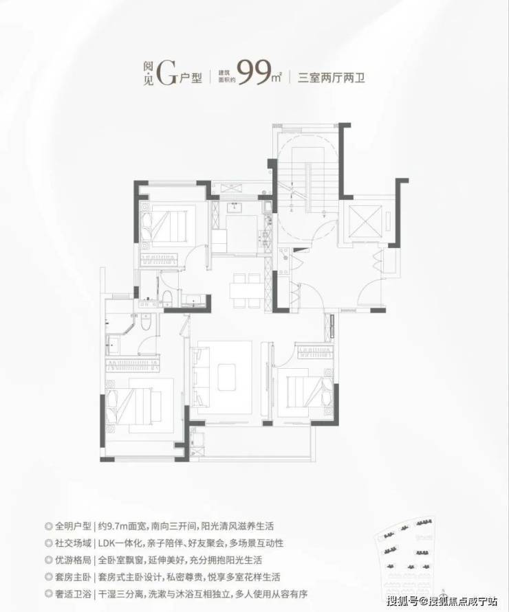 ②建面约99㎡H户型:三面采光,全能景观王炸边厅户型!