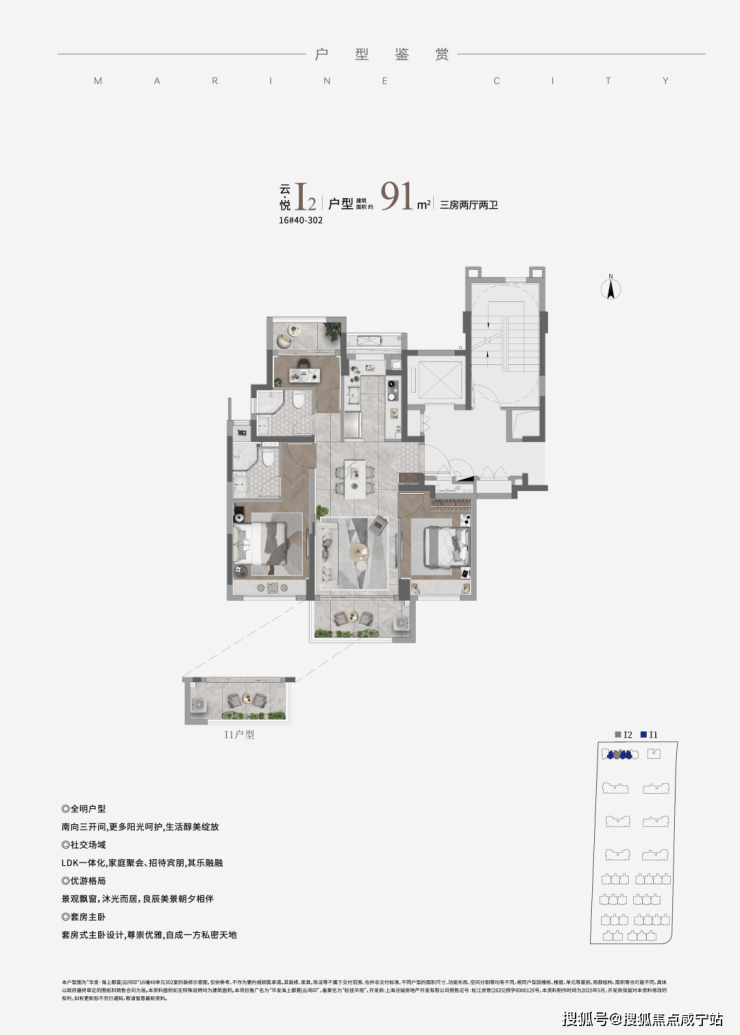 建面约91㎡的三房采用经典的飞机户型,南北通透,主卧带飘窗,晾衣服都能晒到太阳,适合当下年轻上班族对阳光和悦己体验的生活需求;