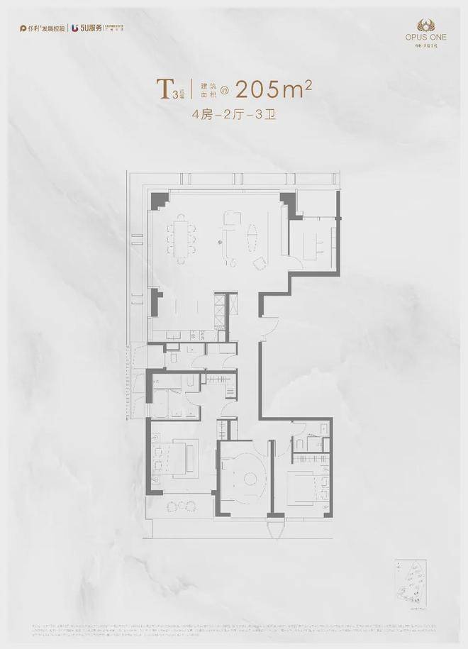 ⑥ 174m²客厅8.2米/奢侈三房/主卧开间5.7米/最小卧室约14m²