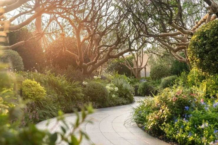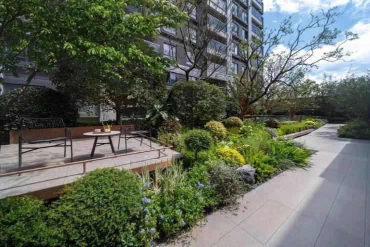 内部景观 :社区绿化率 35%,打造 “两轴一环五园” 森系景观,移植全冠乔木,搭配四季花卉,营造 “推窗见绿、移步换景” 的居住体验。