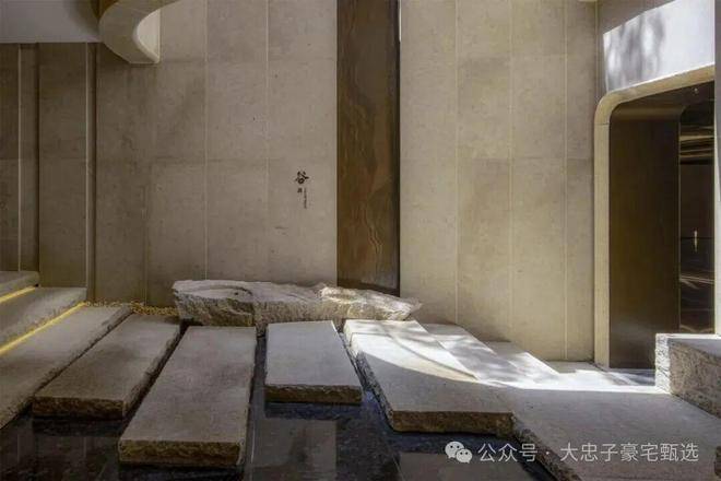 造型别致的罗马浴场风格和我国宋代名画《溪山行旅图》在这里完美碰撞,再加上项目很巧思的在泳池上方做了天窗,引进了自然光线,呈现出非常独特的美感。