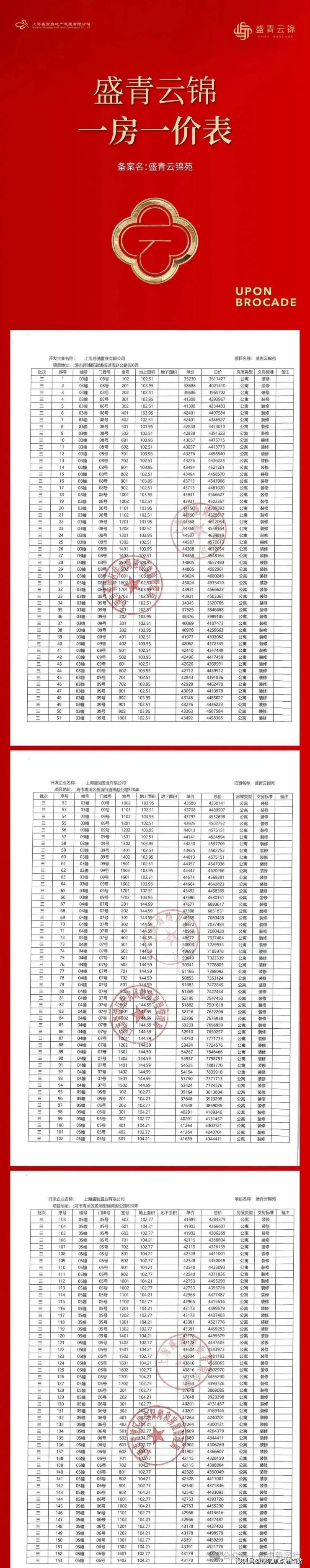 青浦新城「盛青云锦」加推212套建面约103-197㎡3-5房,均价44522元/㎡