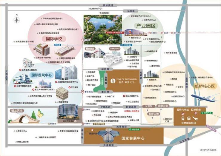 医疗 :紧邻新虹桥国际医学中心,1 个医技中心 + 7 家高端医院,提供国际级医疗服务,健康无忧;