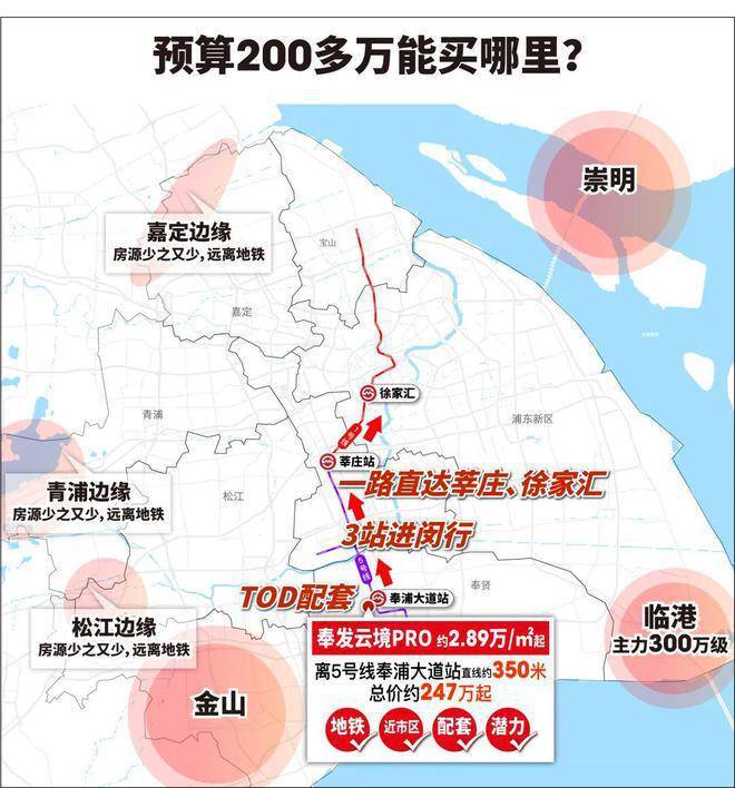 主流无非就是崇明、金山,发展欠佳;连临港主力总价都要300多万了;嘉定、青浦、松江该总价段的新房更少之又少,即使有个别,那离轨交也很远。