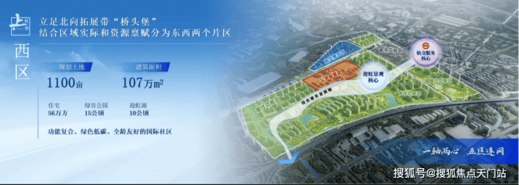 上虹桥依托东西两个片区(西居东产,共计约167公顷),遵循“以人为本、产城融合、多元包容、活力共享”的理念,整体打造创新经济集聚区、中央商务配套区和高品质国际化社区。