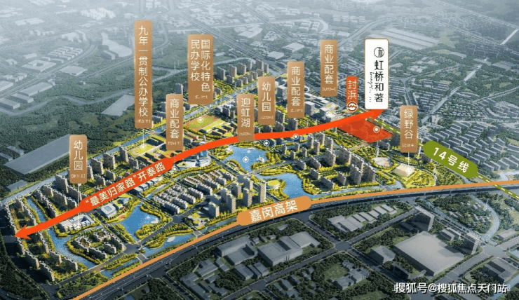 计划引入民办学校(国际化特色办学)、九年一贯制教育,规划打造10公顷迎虹湖、带主题滨水公园的15公顷绿野谷公园等配套。将以“三年有样、五年出形、八年成城”的速度,构建“生产、生活、生态”融合发展的高品质社区。
