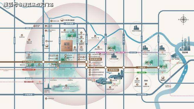 咫尺虹桥主城区,一二手房价有明显差异,近40万方商业环绕,区位示意图大虹桥周边臻稀低密洋房