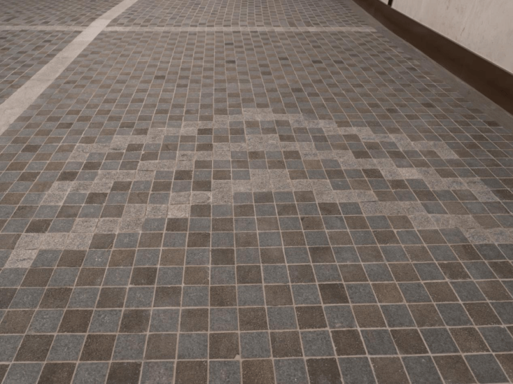 指引箭头与分割线,皆以同厚度的马蹄石精准镶嵌。于沉稳的暗色中勾勒出清晰利落的视觉节奏与秩序。