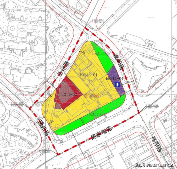 四至范围:东至hk311-05和hk311-04地块,南至hk311-03地块,西至通州路,北至岳州路和hk311-02地块