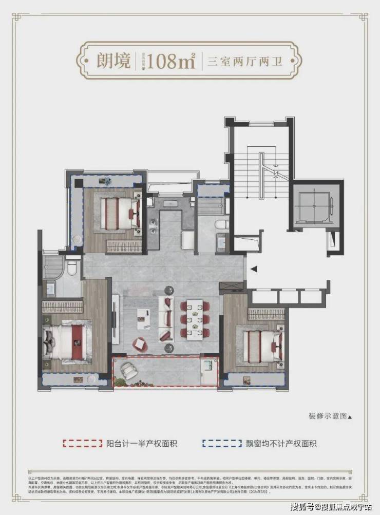 108㎡3房超大面宽横厅,搭配同宽阳台,拥有舒适的采光和通风!