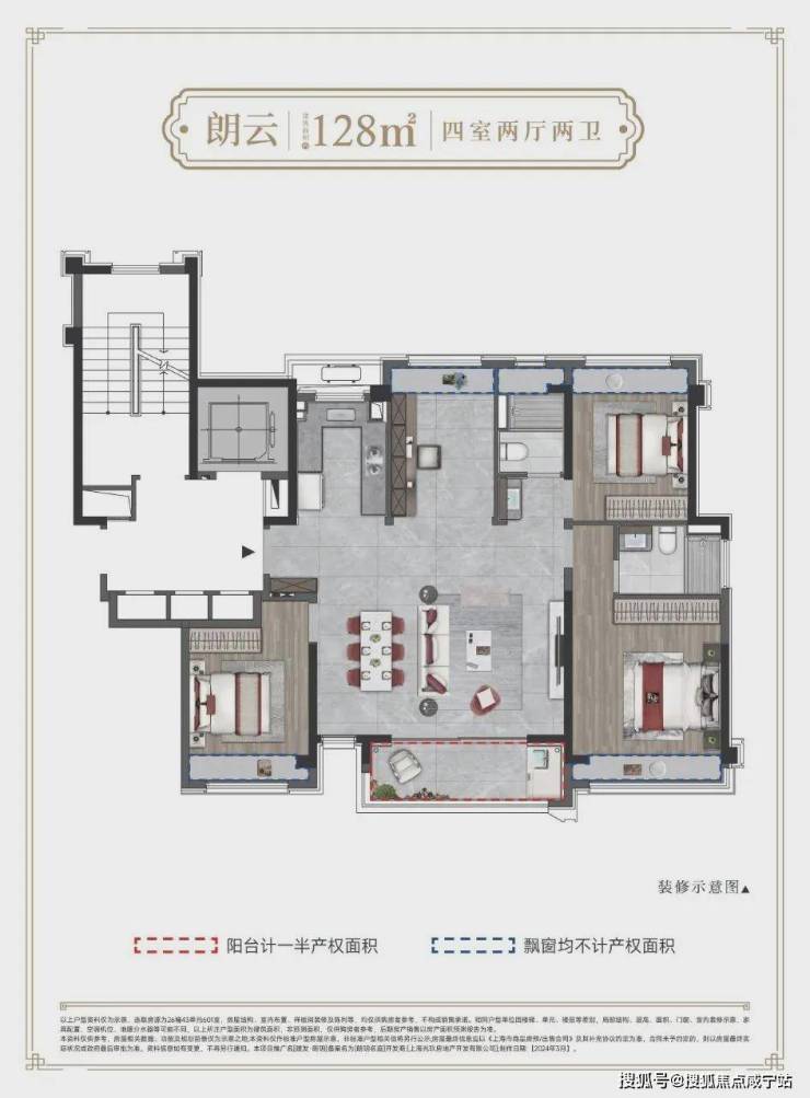 128㎡4房,同款大面积横厅,相比108㎡产品,空间进一步升级,北向书房可视业主需求,弹性设置,或为书房,或为电竞房,或为水吧,甚至可以再隔一间儿童房……
