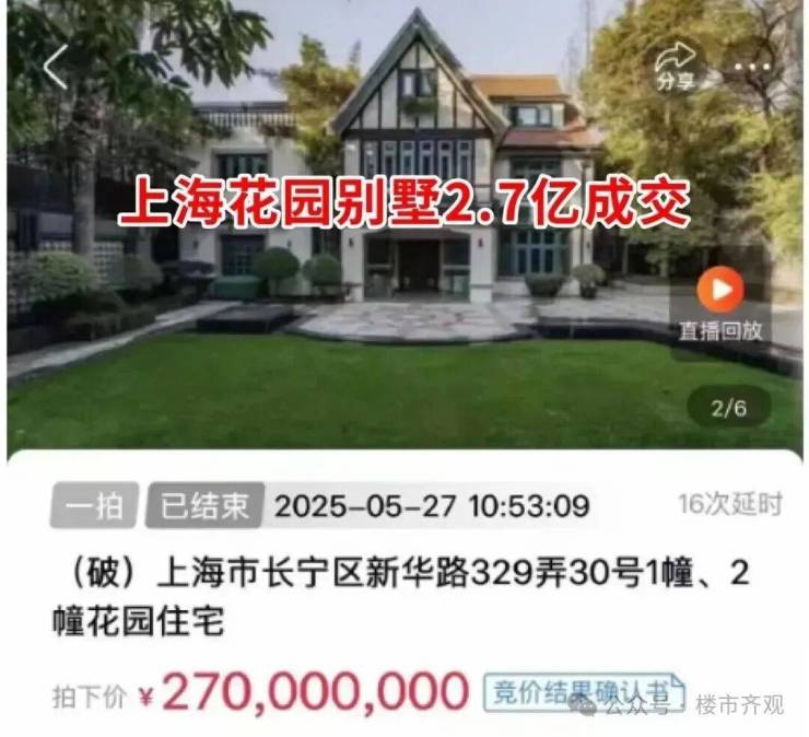 日前,上海一花园别墅以单价约50万/㎡,总价2.7亿元成交,建面约535㎡,独占约1.5亩城市核心土地!