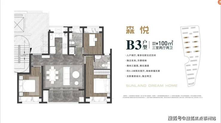 B3户型:建筑面积约100㎡三室两厅两卫