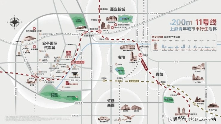 除此之外,上海 2035 规划中的宝嘉线、嘉青松线即将启动,嘉安高速延展嘉定向东,与宝山互通,以安亭为枢纽核心,嘉定再次站在了时代发展的风口之上。