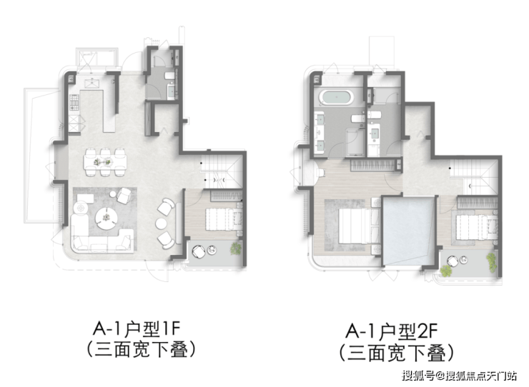 再来说项目的叠墅产品:约9.5米南向三面宽、独门独户、约6.1米地下室挑高(下叠)、超大露台(上叠),可以说,将墅居的尺度感和扩展空间拉满!