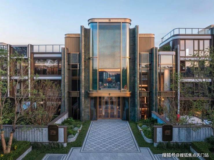 萃屿原墅立面采用大面积玻璃、金属线条、威斯康白石材,将松江新城的住宅建筑美学拉入下一个LEVE,尤其是香槟色金属线条如剪裁合体的高级西装骨架,勾勒出建筑的精致轮廓