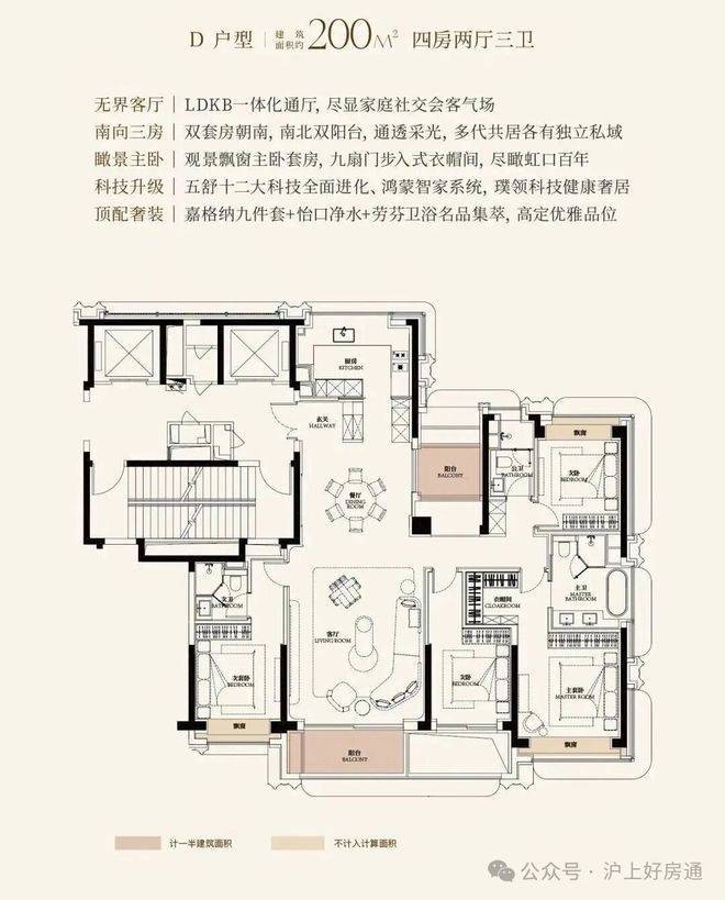 一梯一户、铸铝子母门、华为智能家居自不必多说,金茂通过双主卧套房、独立家政间等设计,完美平衡了家庭的团聚需求与个人隐私