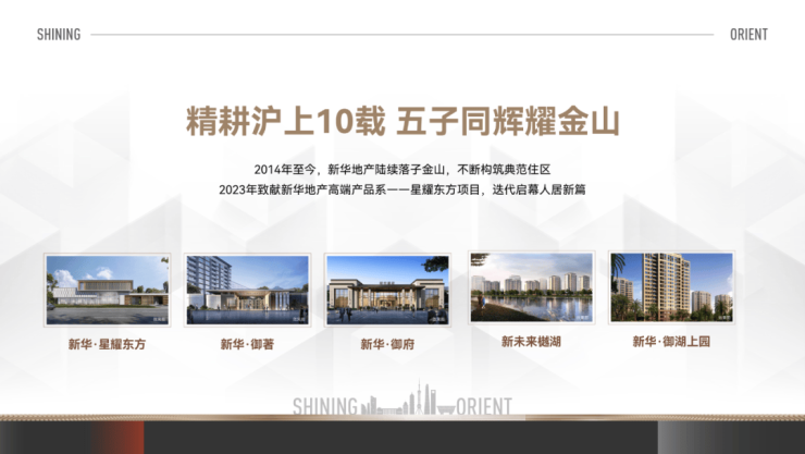 自2014年进入上海以来,在金山这片土地上,相继打造了新华御府、新华御著、新华御湖上园等标杆性人居。