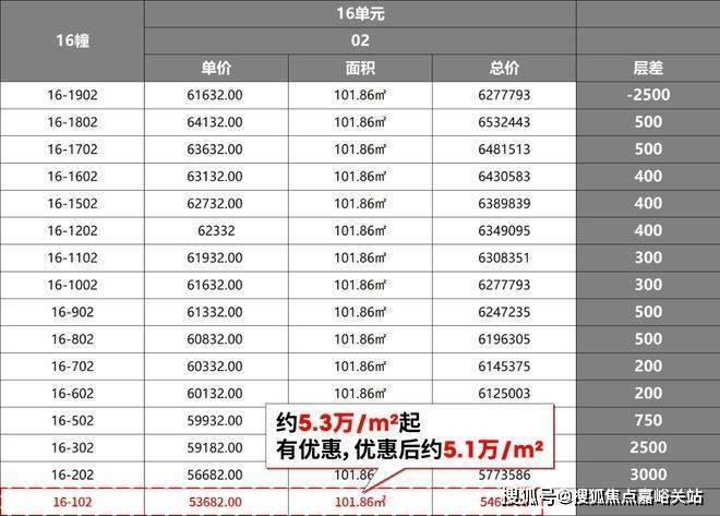 根据一房一价,这批房源整体约5.3万/㎡起,叠加优惠,实际约5.1万/㎡起,这个价格在单价日益高企的闵行几乎绝迹了,堪称捡漏价。