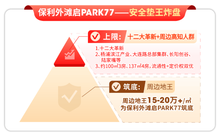 而保利外滩启PARK77成功破解了置业痛点,成为当之无愧“市中心安全垫王炸新盘”: