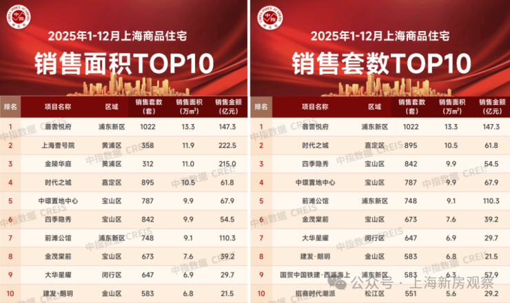 更值得一提的是,根据克而瑞数据,【翡雲悦府】已然刷新行业高度—— 位列 2025年全国10万+均价销售套数第一,更拿下上海近10年10万+均价套数第一!