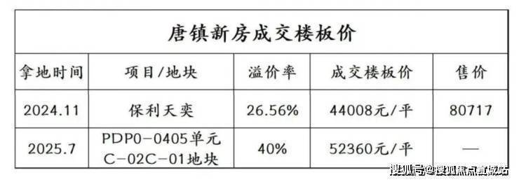 25年7月25日的土拍现场,唐镇地块的争夺堪称“白热化”。62轮报价后,楼面价定格在5.24万元/㎡,溢价率突破40%。这个数字放在唐镇,足以让市场倒吸一口凉气——要知道,2024年11月保利拿下的唐镇地块,楼面价还停留在4.4万元/㎡,短短8个月,地价涨幅近20%。
