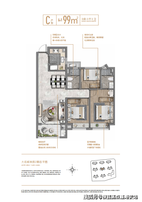 大名城映辰二期由双股上市房企大名城匠心打造,传承“紫金系”精工品质,在深刻洞察时代青年的居住需求后,二期新品在一期的基础上,进行多维度的升级,敬献亲水活力社区。在社区布局上,16F小高层住区,临河而居,营造亲近自然的生活享受;在景观设计上,一心三轴三组团景观打造,下楼即享城市里的诗意森活;在户型空间上,约3米奢阔层高、正三房、大面宽、多飘窗、阔景阳台等设计,纵享阳光美景,全面提升舒居体验。