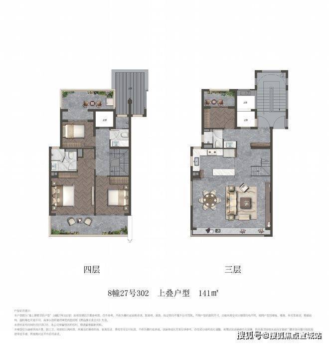 项目叠墅包含建面约141㎡上叠和建面约150㎡下叠.
